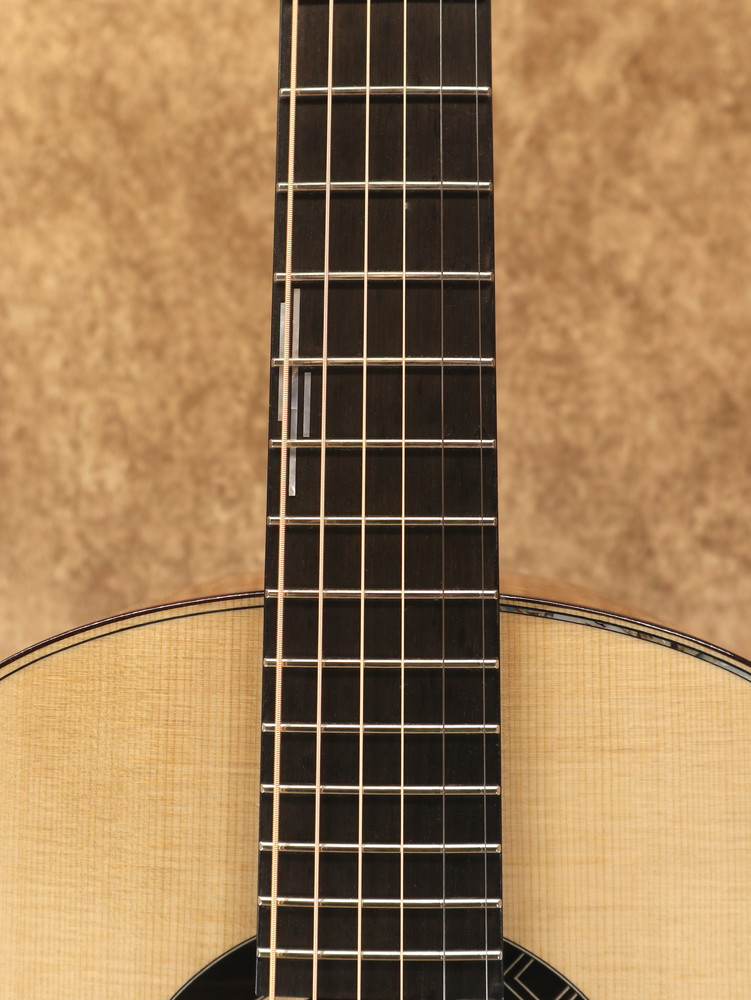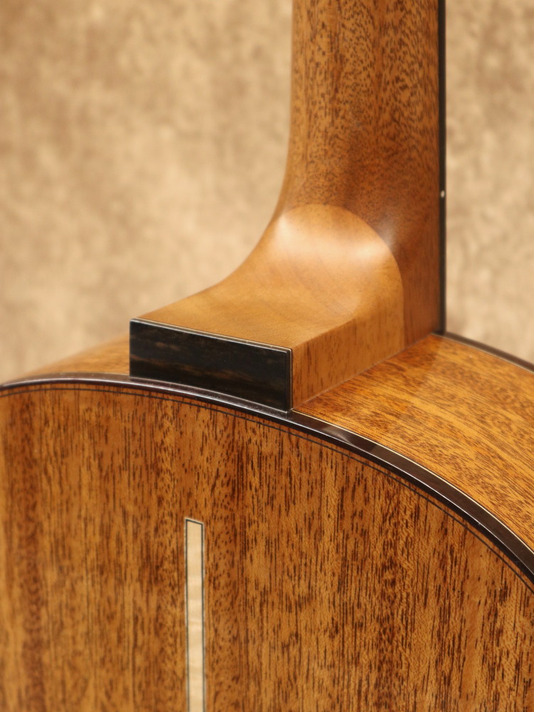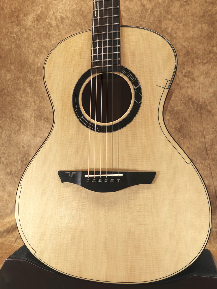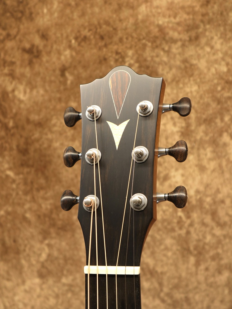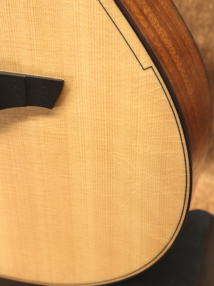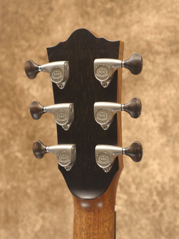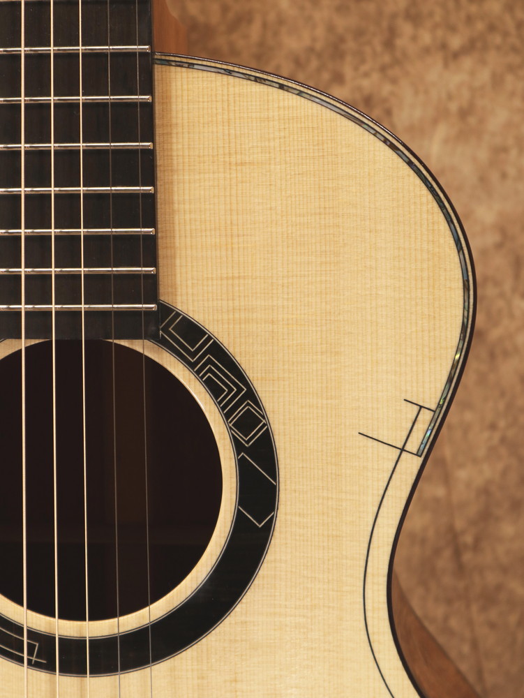 ボディシェイプはオリジナルで、ダブル・オー程度の抱えやすい大きさ。基本的な装飾はシンプルながら幾何学的なモチーフがアクセントとなり、オリジナリティの高いデザインとなっています。