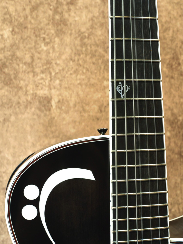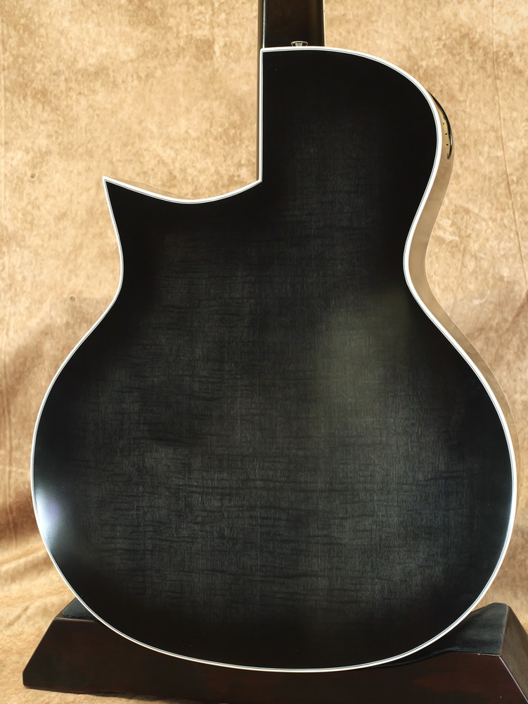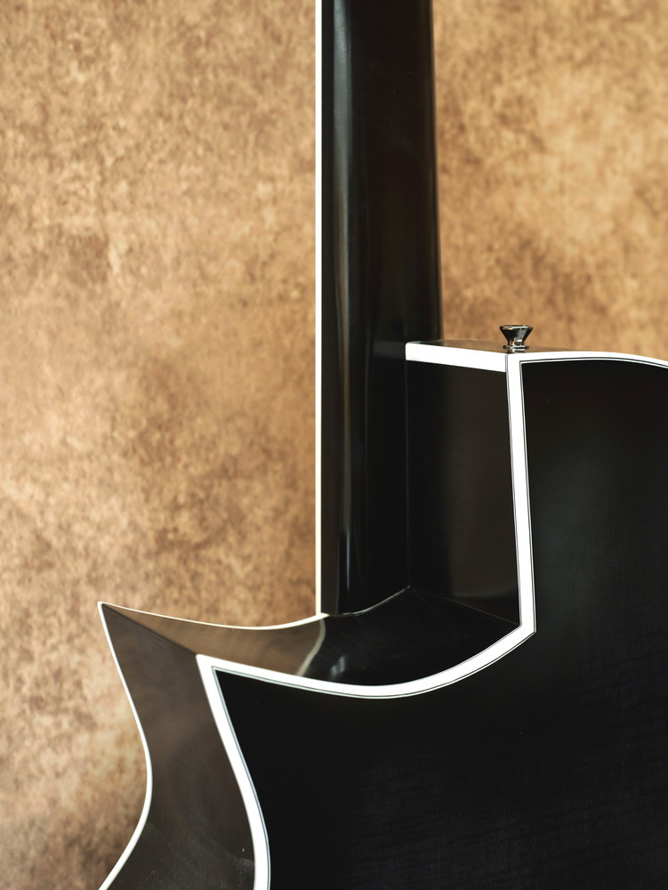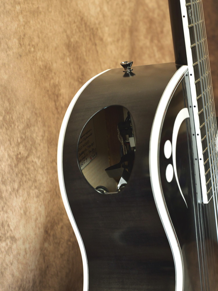 抱え込みやすいようボディは低音弦側にアーチをつけていたり、ネックブロックまで一体のスルーネック仕様、マグネットを使うことでネジ留めが不要のメンテナンスホールなど、アイデアの詰まった1本となっています。
