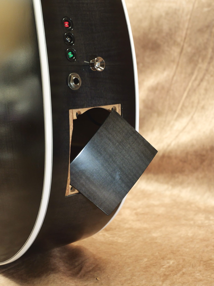 PUは定評のあるLR.Baggs Element VTCをギターとベースで使い分け、LR.Baggs iMixでバランス調整を行っています。ボディサイドのサウンドポート兼メンテナンスホールから調整も可能です。